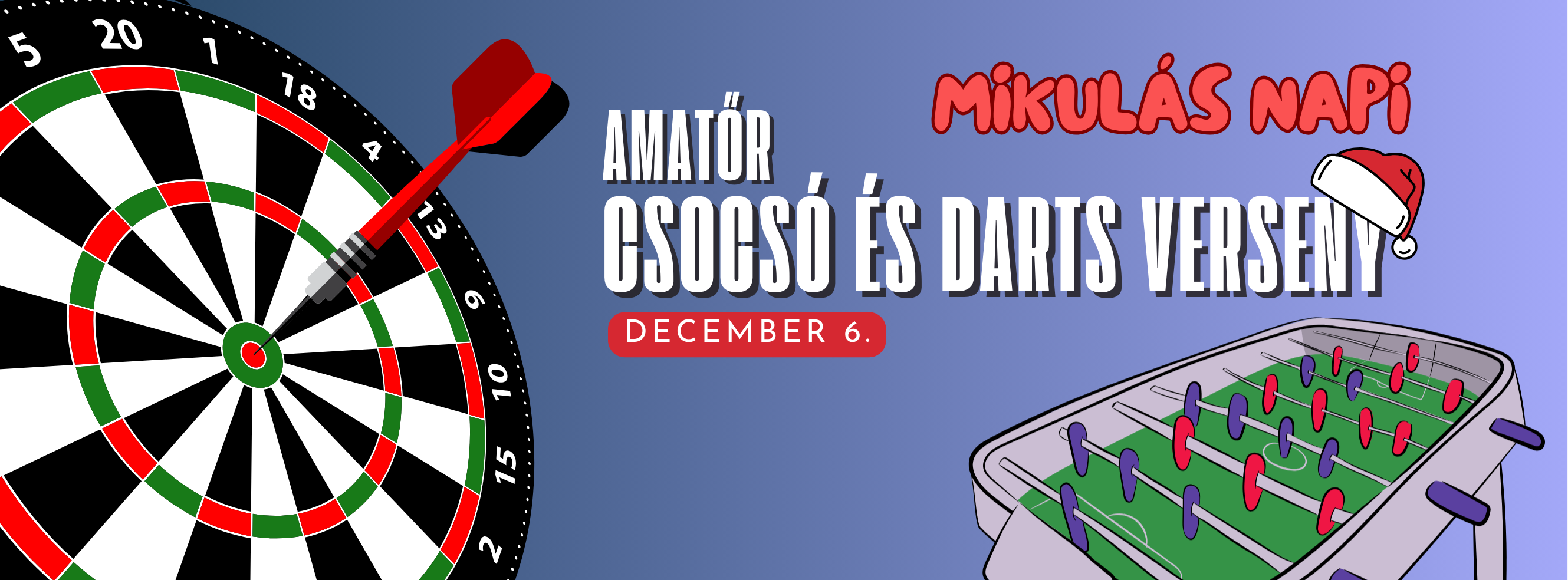 Ünnepeld velünk a Mikulást egy jókedvű, laza és pörgős amatőr csocsó és darts versennyel az AMFI-ban!